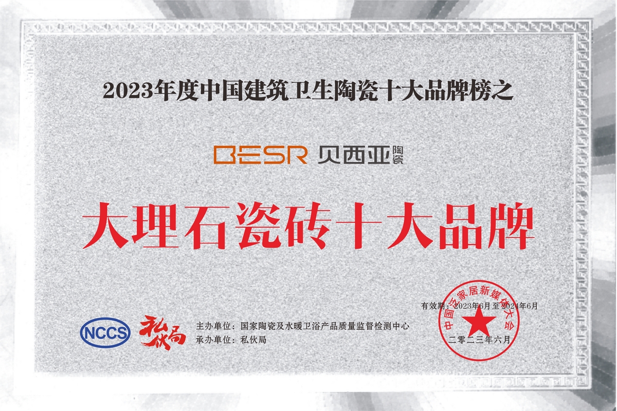 貝西亞陶瓷先后獲得行業“陶瓷十大品牌、瓷磚十大品牌、負離子大理石十大品牌、陶瓷十大創新品牌和現代磚十大品牌”等殊榮,經銷網絡遍布全國大中型城市,產品遠銷國內外,是深受國內外客戶信賴致力打造具有高端、藝術及時尚的輕奢品牌。 -