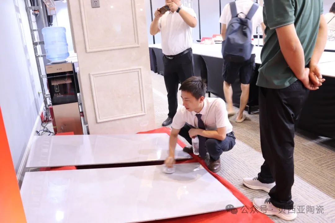 事業(yè)部常規(guī)品牌營銷中心產品總監(jiān)余浩冰先生發(fā)表了題為【信心 · 關于產品】的主題演講,貝西亞陶瓷在規(guī)格、性能上保證產品的質量,同時不斷根據(jù)市場的變化需求,推出適時暢銷、不同工藝的產品,保證產品的強大競爭力。此次峰會上,超耐磨金絲絨瓷磚、石光印記復刻釉、超防滑大理石瓷磚、白金巖板4大系列新品,憑借超高顏值、超強產品性能,獲得了現(xiàn)場眾多客戶的贊賞。
